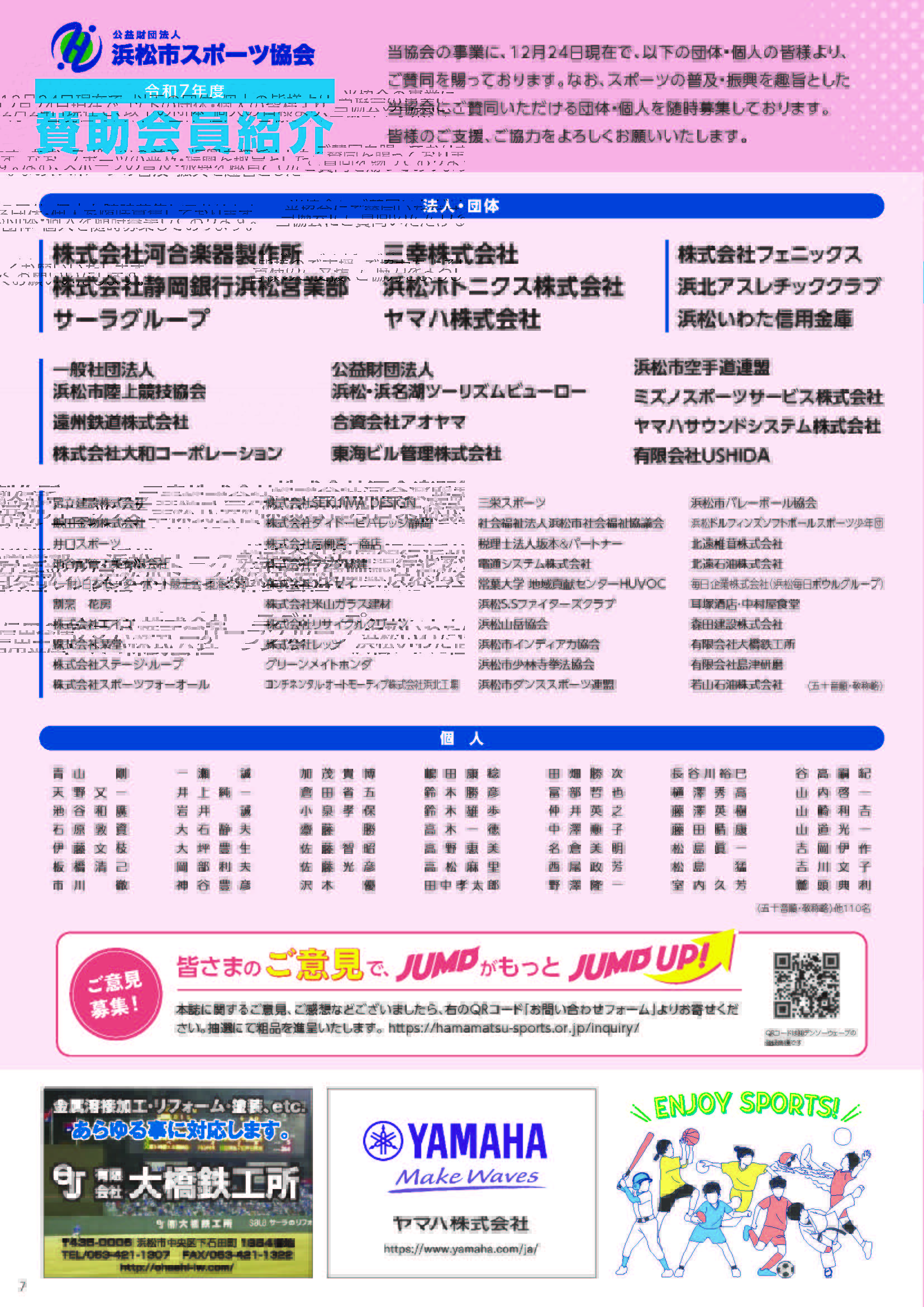 はままつ市民スポーツだより「JUMP」は、企業・団体の皆さまの協賛を受けて作成されています。