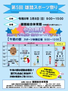 | 運営 ・指導 | 【主催】(公財)浜松市スポーツ協会グループ・雄踏スポーツ祭り実行委員会 |