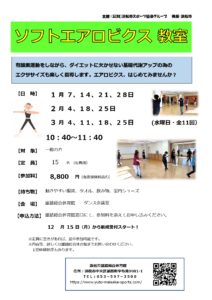 | 日程 | 1月7日・14日・21日・28日/2月4日・18日・25日/3月4日・11日・18日・25日 水曜日 9:15~10:15 全11回 |