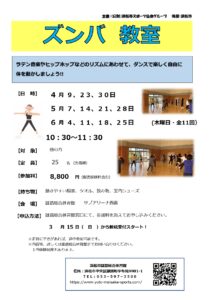 内容ラテン音楽やヒップホップなどのリズムに合わせて、ダンスで楽しく自由に体を動かしましょう♪