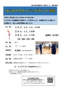 はじめての大人ジャズダンス 1月スタートコース 1月9日・16日・23日・30日/2月6日・13日・20日/3月6日・13日・27日 金曜日 19:00~20:00 全10回