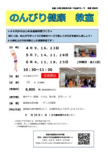 のんびり健康教室 4月スタートコース 4月9日・16日・23日/5月7日・14日・21日・28日/6月4日・11日・18日・25日 木曜日 10:30~11:30 全10回